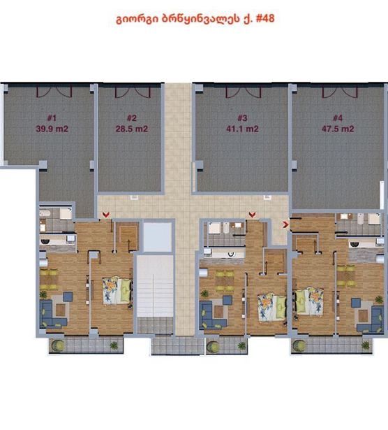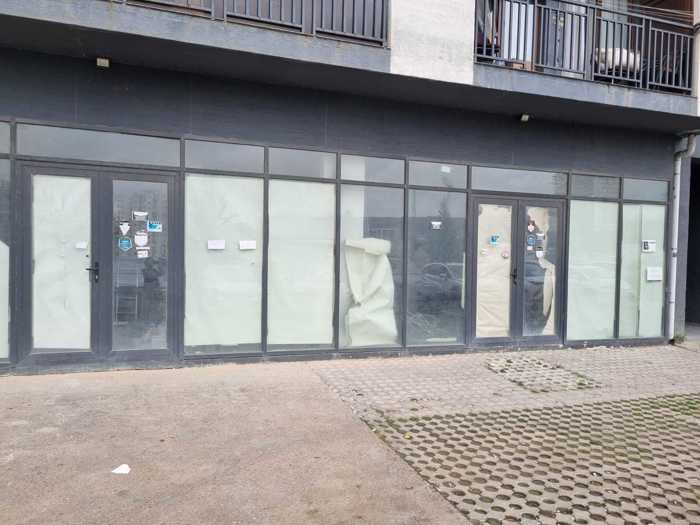 Commercial spaces with stained glass for sale in Digomi, at 48 Giorgi Brckvinales Street, in a newly built residential building, another 2 300-apartment building is being constructed in front, the areas of the spaces are 28.5 m² / 39.9 m² / 41.1 m² / 47.5 m² and they can be combined, coming up to 68.4 sqm and 88.6 sqm, the floor is in a black frame condition, i.e., concrete, while the walls are plastered with gypsum.