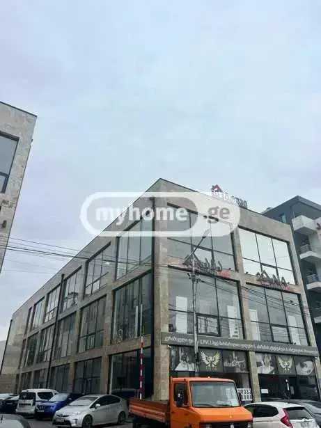 Commercial space for sale. The building is located on Agladze Street. The building is glazed, has three floors, and is built and finished with the highest quality materials. The structure allows the possibility of adding another three floors. The total area of the building is 2130 m², each floor is 710 m², the first and second floors are the commercial zone, while the third floor contains office spaces. The building is equipped with an elevator, security, fire safety, ventilation, heating and cooling systems, has its own underground water reservoir, pumping station, and parking area. The building has been accepted into operation by the Tbilisi City Hall.