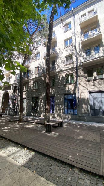 For sale, a space on Agmashenebeli Avenue. The first floor is 25 m2. There is also an auxiliary space of 20 m2 on the lower floor. It has a toilet and a small kitchen.