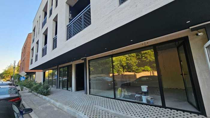 Commercial space for sale with stained glass windows, suitable for any activity, there is no shop or cafe nearby, the space is on the side of the road in Panorama Tbilisi complex, there are 2 spaces of 38.3 and 27m2, also considered for rent $30-1m2, contact me for details