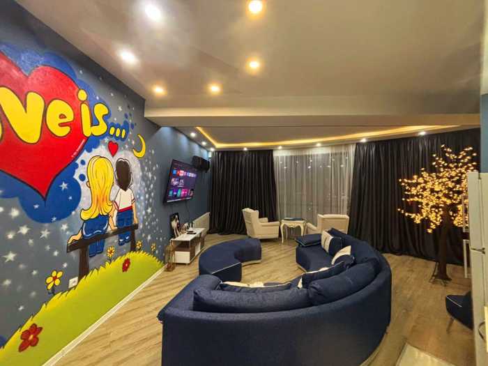 A beautiful apartment for rent with a jacuzzi, panoramic view, very beautiful jacuzzi apartment. Hydro massage, chromotherapy is the perfect relaxation, provided by a jacuzzi from a German company. We also have a two-bedroom apartment with billiards ❤️. Our apartment is located on Shartava, Pekini, Iosebize, and Saakashvili Tower, at 80 Kostava Street. The apartment is in perfect cleanliness. High quality bedding. High-standard disposable items. You will also find a smart TV and even table football in the apartment. It is scented with an aroma ❤️. Rented hourly until 1 AM ❤️. You can call 24 hours a day. We also have one apartment for small parties ❤️❤️ We are waiting for you ❤️