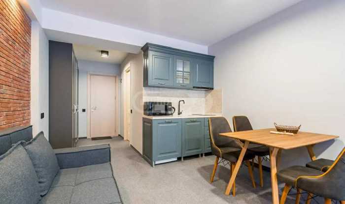 Welcome Flat hosts guests in New Gudauri, Redko, Loft 1! Comfortable and beautiful studio apartment. The best central location the most favorite place for skiing and snow lovers. 2 minutes from the gondola lift. The apartment is fully equipped with modern equipment. Everything you need fully equipped kitchen, refrigerator, microwave, cooker. WiFi. Towels, bed linen, hygiene products. Ski Depot a storage room for skis on the first floor. Cozy balcony with a view of the yard and mountain. Grocery store in the same building. Restaurants and ski rentals around. Indoor pool and spa very close. The exact price depends on the duration and dates of your stay. Write to us