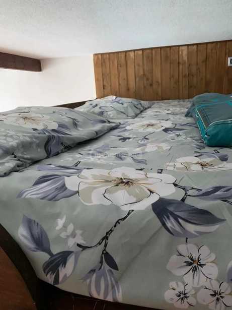 In the end of Kumlisikhi, at the beginning of Gudauri, a duplex type apartment is offered for daily rent on the 3rd floor in a cozy, quiet yard. On the lower floor, there is a living room, a kitchen-dining room, and a bathroom. On the upper floor, there is a large room and a bathroom. The apartment faces east, sunny and warm throughout the day. It can accommodate 3 or 4 people. The price is 300 Gel per day.