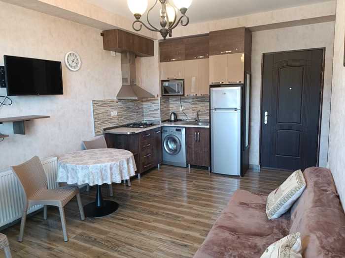 For rent daily, a studio in Bakuriani. In the best location. Equipped with all kinds of appliances and furniture. Behind the apartment, there is an ice rink and a playground for children. The price depends on the number of days. Available from January 18.
