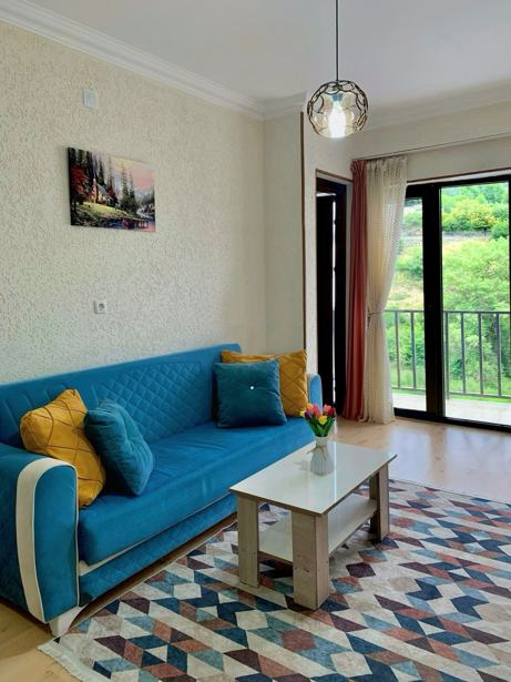 Apartment for rent daily in Borjomi. In the best location, with beautiful views of the mountains and the Mtkvari River. Newly renovated, in a newly built building. Studio living-kitchen area, with a fold-out sofa and one bedroom with a double bed. The apartment has all necessary appliances (washing machine, refrigerator, smart TV, microwave oven, electric kettle, hairdryer), internet/WiFi, kitchen inventory, and dishes. Price: 100 GEL. Address: 5g Grigol Robakidze. 1.5 km away from the park. 5 minutes by car, and 20 minutes on foot. P.S. Please note that the building does not have an elevator. It is on the 4th floor.