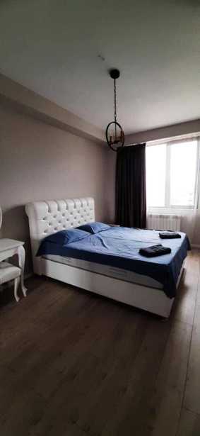 A newly built, non-standard project apartment is available for rent by the day, with an area of 70 square meters, on the 6th floor (from 10). The apartment has 3 rooms, including 2 bedrooms, a living room, and a dining room with wooden floors, in a clean and bright environment. The apartment has two balconies where you can enjoy views of the terrace and the yard. The bedrooms are equipped with large windows and curtains, ensuring natural light and coziness. The apartment has a laundry room, a fully equipped kitchen, and a bathroom. It is an ideal choice for those who want a comfortable and cozy environment in the city.