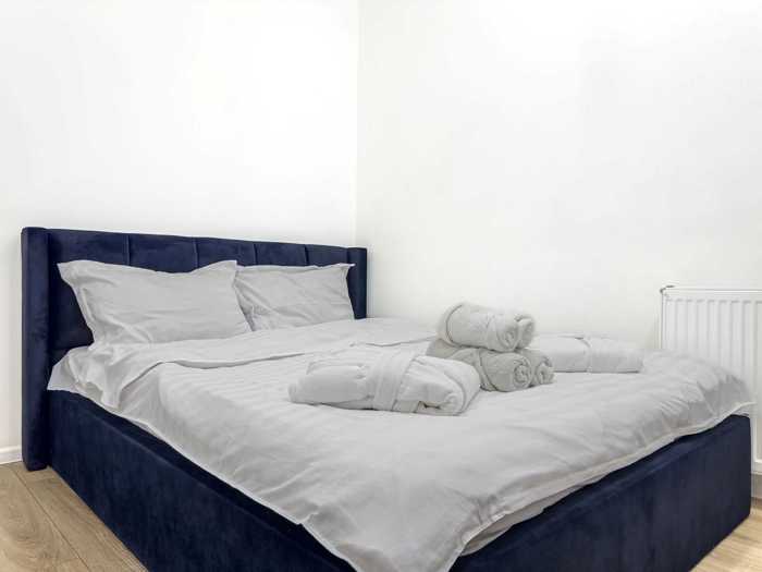 A studio-type apartment is for rent near the Sports Palace, the interior is tastefully designed, neat, and modern. The apartment is equipped with all the necessary inventory for the comfort of the guest and ideal relaxation. The rooms are furnished with modern and comfortable furniture, central heating, air conditioning, unlimited Wi-Fi, and a plasma TV. There are all necessary hygiene items for single use (disposable slippers, shampoo, shower gel, etc.) as well as a hairdryer and an iron. The kitchen is equipped with all necessary appliances.