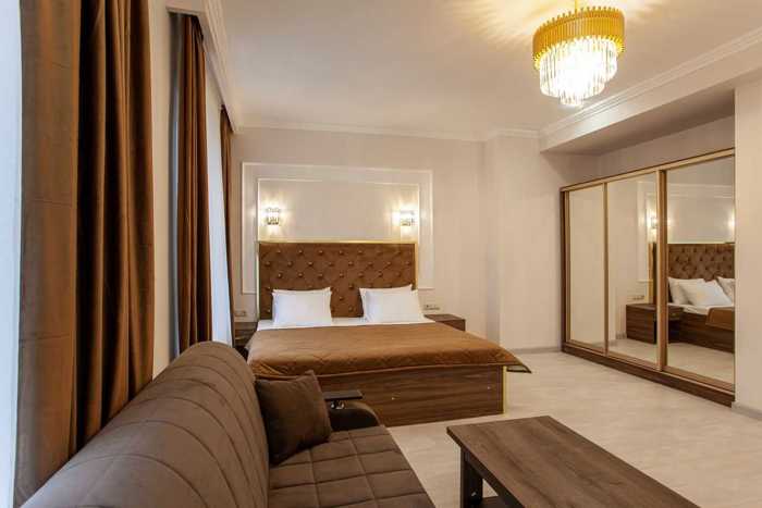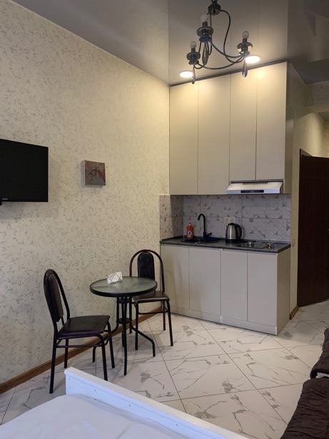 Studio-type apartment for daily rent, newly built, completely furnished, with all necessary furniture and equipment. With disposable hygiene items.