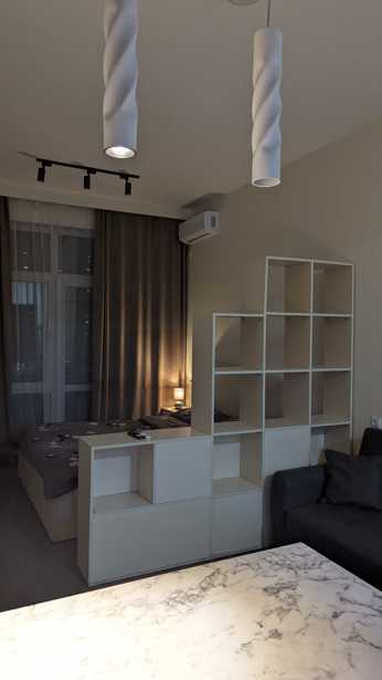An newly built, non-standard project apartment is for rent daily. The apartment is located on the fourth floor of an 11-story building and has a total area of 40 square meters. The apartment has one room and one bedroom, and also has a balcony that provides additional comfort. The apartment is newly renovated and has never been lived in. It is ideal for those who seek tranquility and a modern environment. Here you can feel the cleanliness and coziness of a new home.