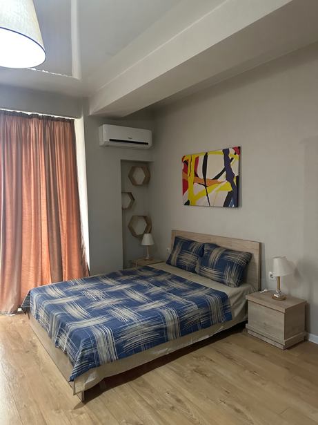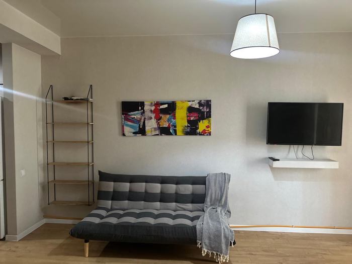 A furnished apartment is available for daily rent. The apartment has everything you need for your comfort: tea, coffee, shampoo, toothbrush, disposable slippers, bed linens, towels, bathrobes, laundry supplies, dishes, and other necessary inventory. We maintain a high level of cleanliness, coziness, and comfort. This apartment is located near Kikvidze Park, 29 Tornike Eristavi. The apartment has a balcony and a nice yard. Nearby attractions include Kino Georgia, Kikvidze Park, Metro Didube, shopping center 'Saba', McDonald's, and fitness center 'Reform', next to the building are Nikora, Spar, and a pharmacy.