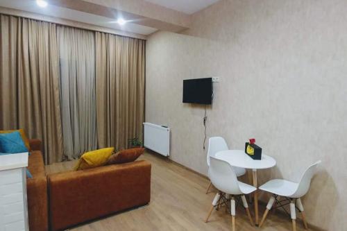 For rent daily a tidy and cozy apartment with full comfort! The apartment is equipped with everything you need for an unforgettable time. Conditions: Location: Tbilisi, Nazaladzevi, Giorgi Chqondideli 34, m² Development. The apartment is exactly in the condition shown in the photos; free Wi-Fi; clean linens, towels, personal care and hygiene items (slippers, liquid soap, toothbrush, shampoo, soap); kitchen fully equipped with dishes, refrigerator, electric kettle, toaster, microwave and other utensils; coffee, tea, sugar; air conditioning and heating; self check-in via Smart lock; Smart TV (with YouTube/Netflix support); 100% privacy; free parking spaces; football/basketball stadium and children's entertainment playground; secured entrance, 24/7 cameras; smoking is prohibited, allowed only on the balcony.