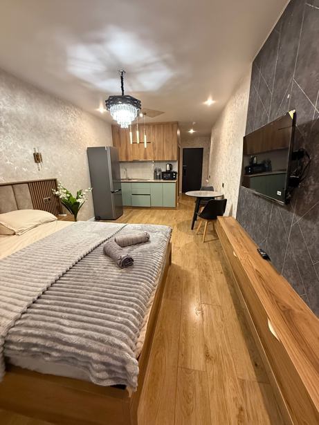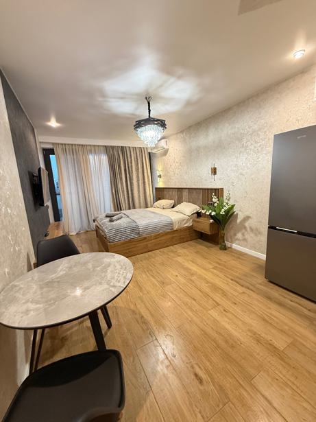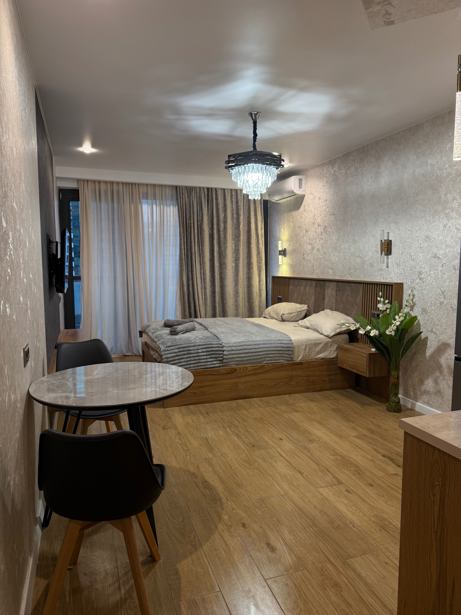 A newly built apartment is available for rent per day, located on the seventh floor of a multi-storey building. The total area of the apartment is 35 sq.m and includes one room. The apartment has one balcony with pleasant views. The new building, built to modern standards, provides a comfortable and cozy environment. It is ideal for those who want to escape the noise of the city and enjoy a peaceful rest. The apartment is located in a new complex, which ensures additional tranquility and security.