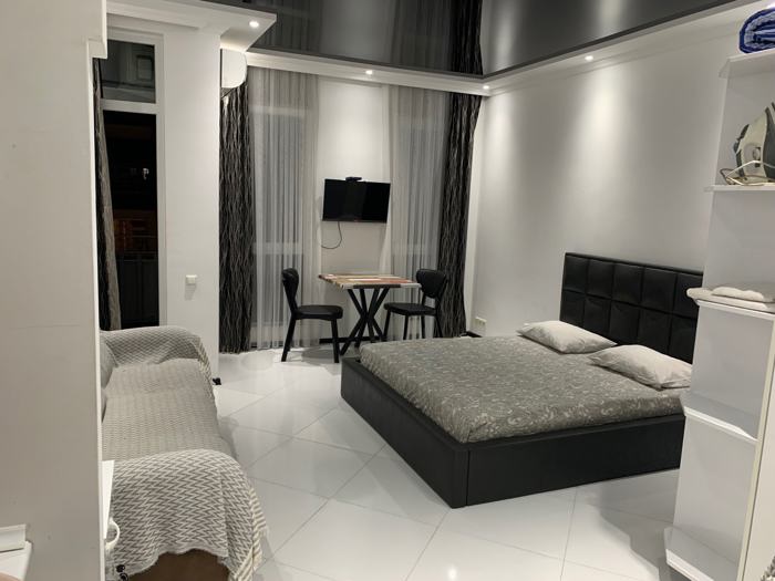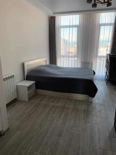 I am the owner. In the 6th of May Park neighborhood. In the center of Batumi, next to the restaurant of Pirosmani, at the intersection of Chavchavadze and Haidar Abashidze (old Turgenev) streets, a newly renovated bright one-room apartment is for rent on the 8th floor of a newly built elite building. Central heating, air conditioning, internet, smart TV, well-equipped kitchen, refrigerator, washing machine, gas stove, microwave. Balcony. Well-maintained entrance, fast elevator. I am the owner.