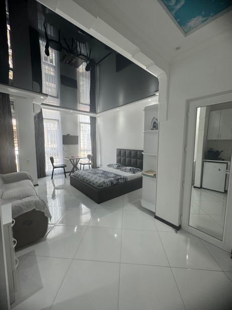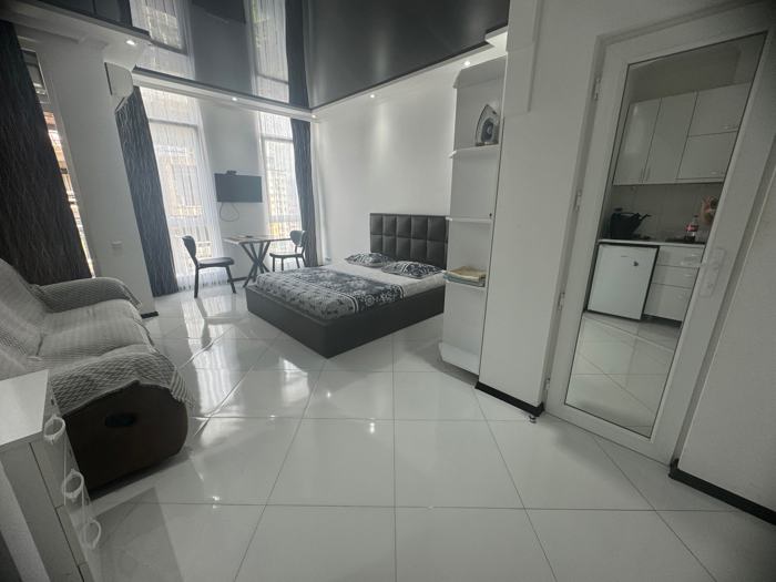 I am the owner. In the 6th of May Park district. In the center of Batumi, at the intersection of Chavchavadze and Haidar Abashidze (old Turgeniev) streets, next to the restaurant Pirosmani, there is a newly renovated bright one-room apartment for rent on the 8th floor in a newly built elite building. Central heating, air conditioning, internet, smart TV, equipped kitchen, refrigerator, washing machine, gas stove, microwave. Balcony. Well-maintained entrance, fast elevator. I am the owner.