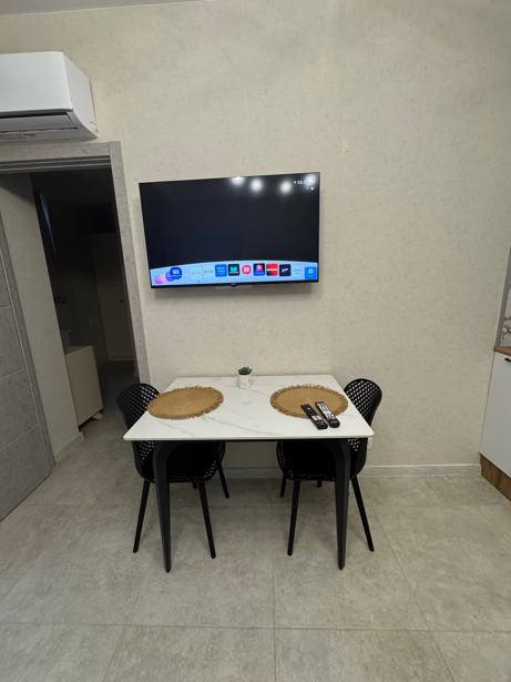 Smart lock-access by code. Available for daily and hourly rent, a 2-room apartment on Meskhechvilis Central Street, easily accessible. Wi-Fi | ❄ Air conditioning | Dishwashing TV | Washing machine | Clothes dryer. Not available for minors and noisy parties. (24/7) All necessary items and accessories, new renovation, cleanliness, everything you need. The apartment is designed for 3-4 people. Call anytime - 24/7. Contact