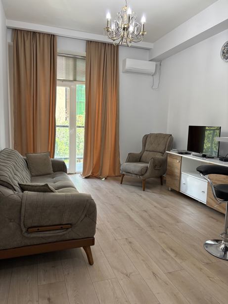 For rent: a 2-bedroom, newly renovated apartment, furnished and equipped. The apartment has all the necessary items. Price is negotiable, 150 GEL for 24 hours. The apartment is suitable for 4 people.