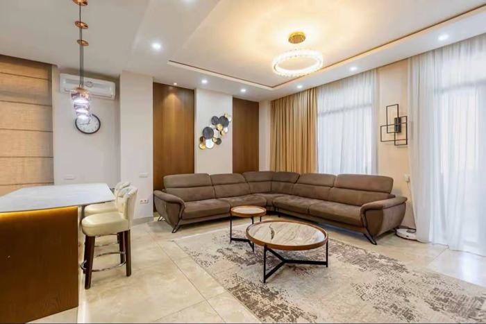 An newly built apartment of 120 sq.m is for rent, located on the ninth floor of an 11-story building. The apartment has three rooms, including two bedrooms, providing a comfortable and cozy living environment. The apartment has one balcony, which offers pleasant views. The new environment and modern design create a special atmosphere where you can feel peace and harmony. The apartment is ideal for those who appreciate space and living in a new environment.