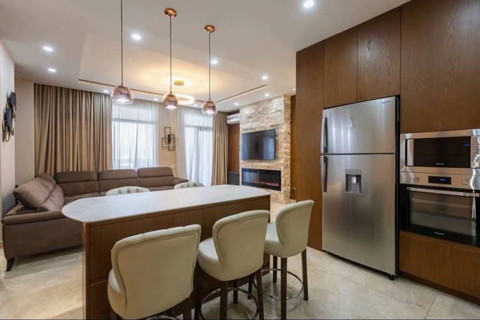 A three-bedroom apartment for rent in the residential complex of Villa Residence, two of which are master bedrooms, on the third floor of a newly built building on Sairmi Hill, the apartment is newly renovated, equipped with all kinds of furniture and appliances. - On the 1st floor there is an isolated basement for all residents. There is a communal pool on the fourth floor