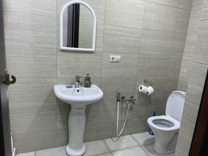 An irregularly designed apartment is for rent in a newly built building, located on the first floor of a three-story building. The total area of the apartment is 35 sq.m and includes one studio room. The apartment has been newly renovated and has a yard that is independent and belongs only to this apartment. Additionally, there is one more room in the yard, which is ideal for a workspace or office. For additional questions, please call the specified number.