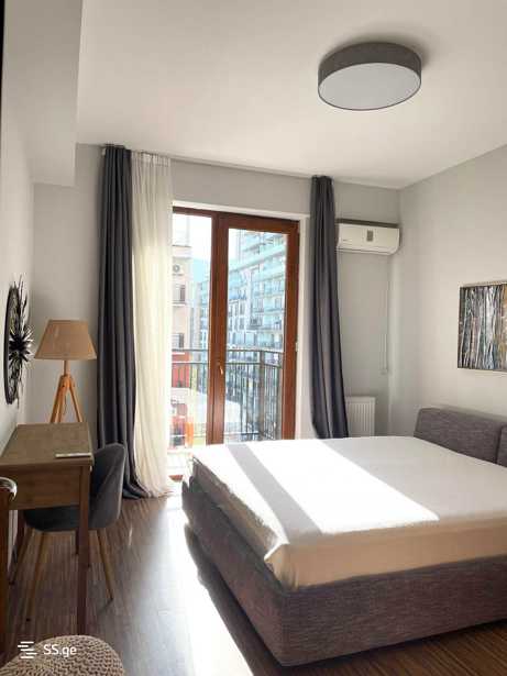 In big Digomi, a renovated 3-room apartment is for rent. Giorgi Bzrykvaneli Street #25 On the 1st floor of a 16-story building. High first floor, 12 stairs. High ceiling, 3.6 meters. With a separate entrance. Suitable for both living and office use and more.