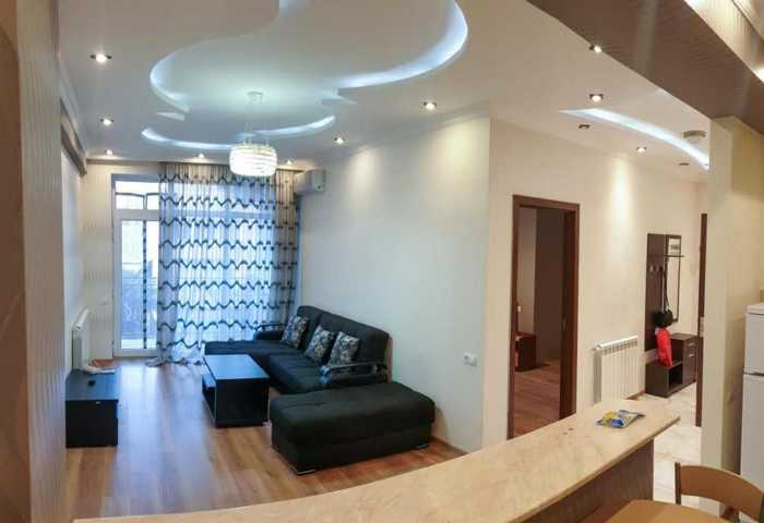 An apartment is for rent in a newly built, non-standard project. The apartment is located on the fourth floor of a four-story building and covers an area of 75 sq.m. The layout includes two rooms, including one bedroom and a balcony, which adds extra comfort. The apartment has been newly renovated and no one has lived in it. The space is bright and cozy, creating an ideal environment for relaxation and daily life. The apartment, meeting modern standards, provides peace and comfort for those who value new surroundings and quality.