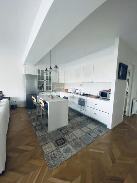 A newly renovated apartment is for rent in Sololaki, in a newly built building with a view of Old Tbilisi. The apartment also comes with parking. The apartment is equipped with all kinds of appliances.