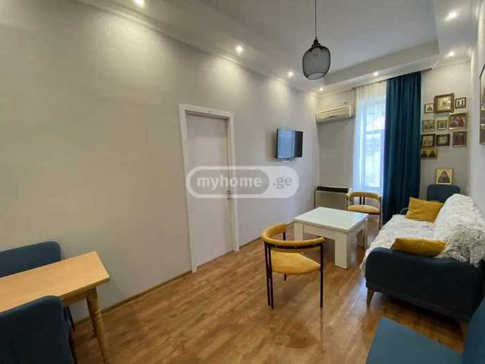 Apartment for rent in the center of Tbilisi, near Freedom Square, Sololaki, Kikodze 1, clean, fully isolated, with a private entrance from the yard. With a small veranda. Renovated apartment with furniture and appliances, payment in advance for two months.