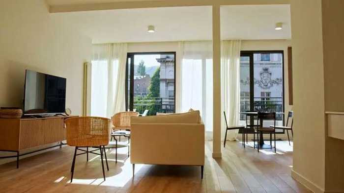 The apartment is newly renovated. Uninhabited. It has 2 bedrooms, a studio-type living room, 2 bathrooms, and 2 balconies.