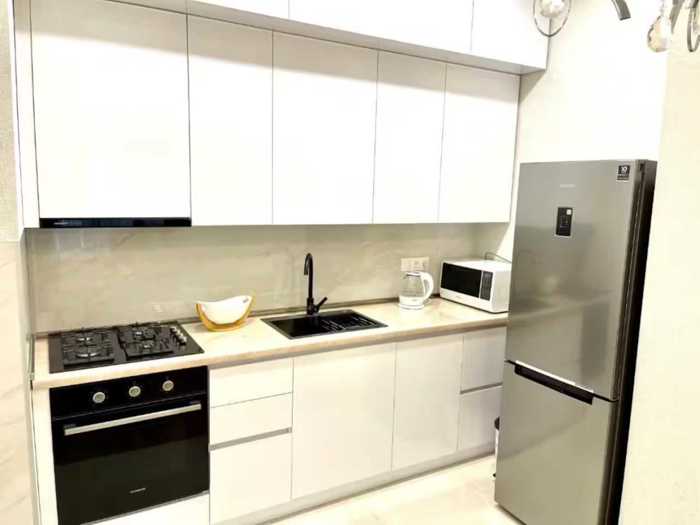 For rent a three-room apartment behind the Sports Palace. With European renovation, large balconies. Bedrooms with their own bathrooms. One large bathroom with a jacuzzi. With furniture and appliances. For rent for at least 1 year. Price 2800 GEL