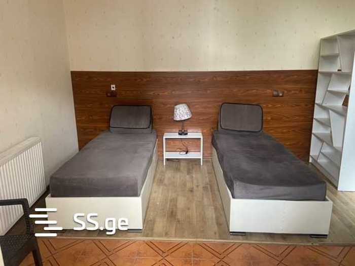 For rent is a 3-room apartment in the center of Tbilisi, near the Pelitexnikuri metro station, behind the Sports Palace. All types of transport are easily accessible to any direction in the city. It is the entire 2nd floor of a private house. It has a separate entrance. There are two large equipped cozy balconies. The apartment has two bedrooms, a living room with a fireplace, one bathroom, and a separate kitchen. The house is completely finished with eco-friendly chestnut wood paneling. The floor is parquet. It has central heating, air conditioning, a refrigerator, a washing machine, a TV, and the internet. The apartment has new beds and comfortable mattresses. All necessary household items and appliances are included. Payment is required in advance for the first and last month. Interested parties can contact me at the number .