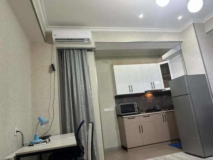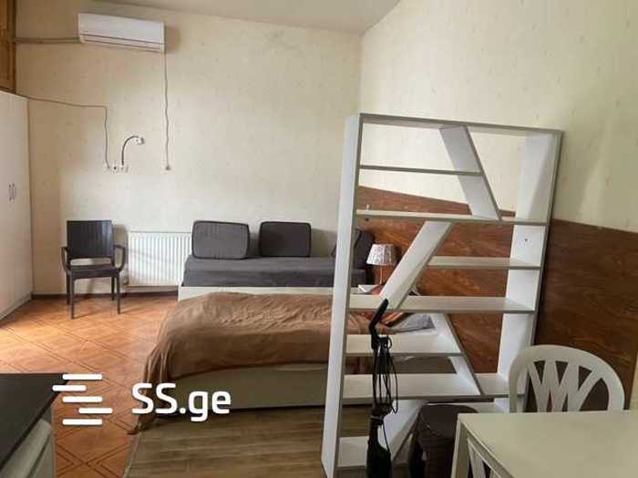 For rent: a 1-room studio-type apartment in the prestigious central district of Tbilisi - Saburtalo. McDonald's is 200 meters away. Many shopping centers, restaurants. Georgian cuisine, metro, and public transport stop. There is 1 bedroom with a fireplace, creating a romantic atmosphere. The apartment has central heating, a well-equipped kitchen. Cable TV, internet, washing machine. There is a small yard and a large veranda. I cooperate with agencies. I have no restrictions, I am the owner.