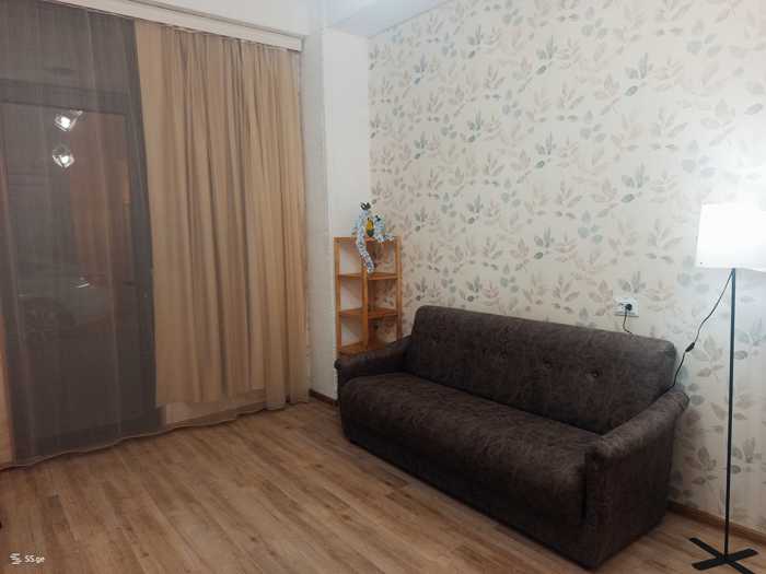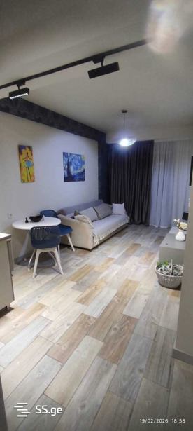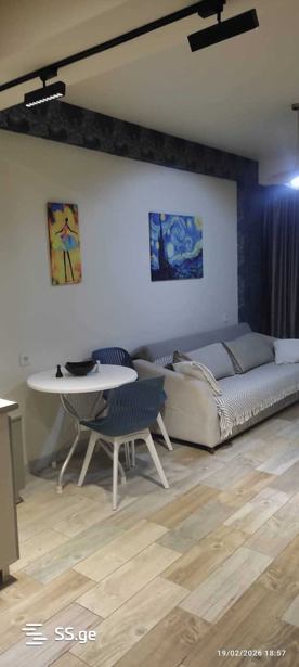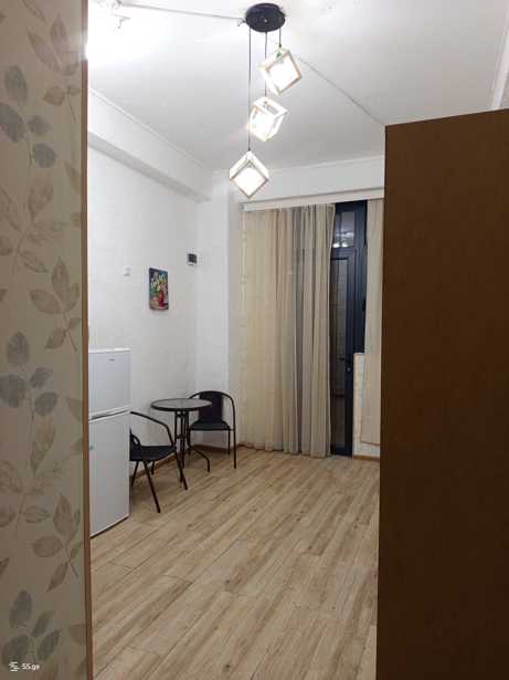For rent, a 55 sq. m studio-type apartment on the 8th floor on Mirian Mefe Street, with furniture and appliances, above the bus stop. Based on the principle of payment for the first and final (2) months.