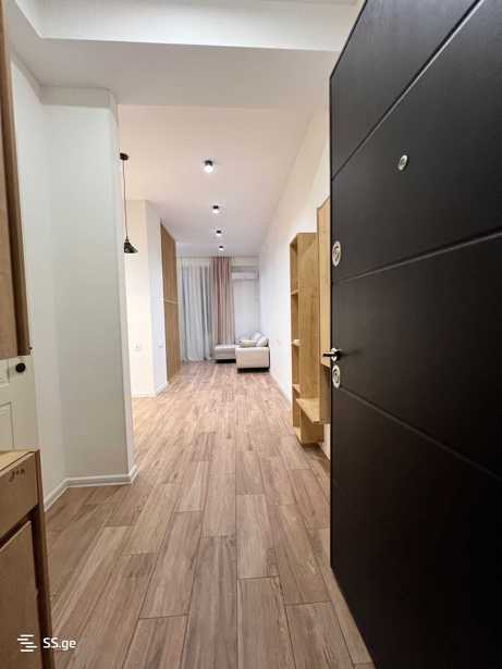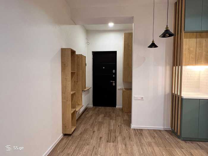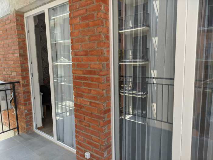 An apartment is for rent near Gudvil in a newly built building, the apartment has a separate kitchen and a separate living room, there is a large storage space and a window in the bedroom, there is a bathtub in the bathroom, the kitchen is equipped with high-quality appliances - an oven, a microwave, a dishwasher, etc.
