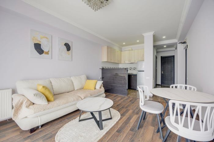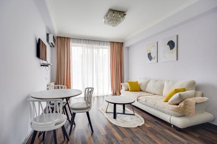 For rent: 4-room apartment with 2 bedrooms for 800 dollars with a 2-month advance payment, located between Metro 300 Aragveli and Metro Isani, in a prestigious residential complex. The complex maximally ensures the safety and comfort of the residents. The apartment is very close to all central areas. There are two metro stations within a 5-minute walk. There are also bus stops in front of the apartment. The apartment is equipped with all necessary furnishings. It has 2 insulated bedrooms, 2 bathrooms, an insulated kitchen, and an insulated living room, with large additional storage in the hallway. The apartment is on a corner, thus it has views of both the main street and the quiet side of the yard, where there is also a balcony. If interested, the price of the apartment is 800 dollars without parking.