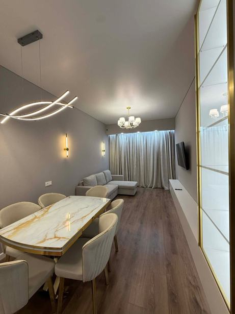 For rent in the Saburtalo district, in the X2 building on Shartava Street, 73 m2, 2-room apartment with 1 bedroom, central heating system, furnished with all kinds of furniture and appliances, with a balcony offering views of the city, on the 16th floor of a 22-story building, with two passenger elevators. Very cozy and tastefully decorated apartment. Nearby the building, there is a supermarket, Carrefour, 5 minutes away from the metro, and public transport lines next to the building. Price - 900 $.
