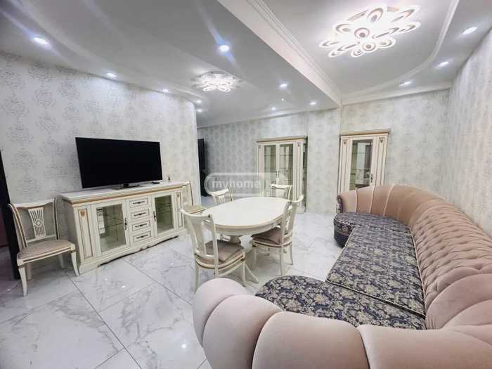 An 105 square meter apartment is for rent on Shartava Street in Saburtalo, with 2 bedrooms, 2 bathrooms, and a balcony. The apartment includes furniture and all necessary household items. A cosmetic renovation has been carried out in the apartment.