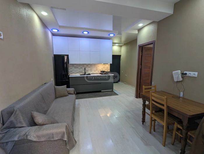 For rent, a newly renovated flat with furniture in a place with good infrastructure. Total area: 80m². Two balconies, two bedrooms, studio type living room. Nikora and PSP networks are represented in the commercial spaces below the building. Nearby: Imedi Clinic, Spar, Aversi. Yard parking, children s area.