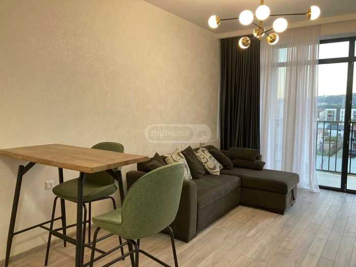 An apartment is for rent in Didizghomi at Asmatis Street 11b, on the 5th floor of a newly built building. The apartment has a new renovation, furniture, and appliances.