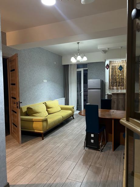 For rent: a 2-room apartment. It is suitable for no more than three people. The apartment is equipped with all necessary appliances — gas stove, refrigerator, washing machine — and essential furniture. It is rented for a period of at least 6 months and up to 1 year. Includes a land plot that can be used. The price is final — 800 GEL. With 2 months advance payment .