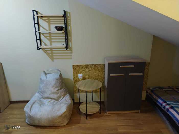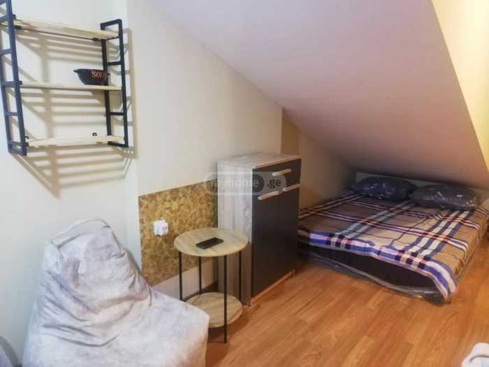 For rent in the center of Saburtalo, near Saakadze Square, a renovated studio (attic type), fully furnished cozy small apartment, located 5 minutes walk from the Technical University metro station, and nearby are the University of Georgia and the Technical University. For rent to two female students, a lady, or a couple, for a long-term lease (minimum 1 year or more...). The apartment has natural gas, a gas stove, a washing machine, an electric heater, a refrigerator, hot water. The price is 900 GEL, by contract.
