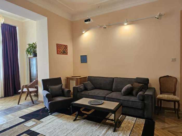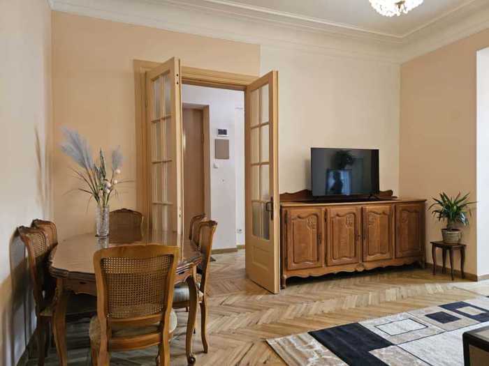 An apartment is for rent in the very center of Tbilisi, 100m from Rustaveli Avenue on Shota Meskhi St. 1a (formerly Hertzen St.), near the 7-star Biltmore hotel. The apartment is in an old quality nomenclature house with good thermal and sound insulation, good layout, and high ceilings. The apartment has a parking space in the yard with a barrier. The apartment is in a good location, 5 minutes from Rustaveli metro. It is rented at a good price for $1100. Similar apartments in this area are rented for $2000.