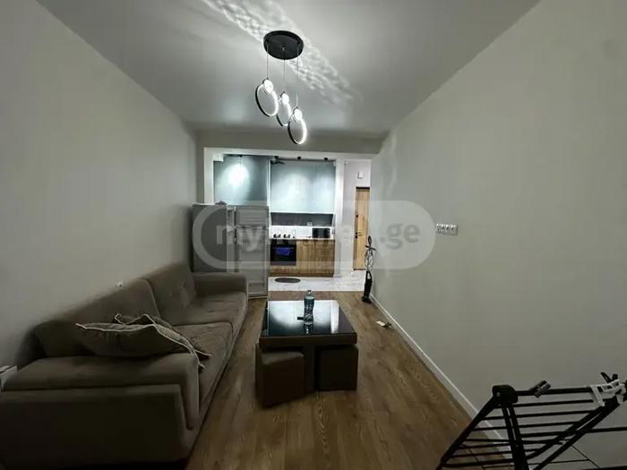 An apartment is for rent in Arkhi Yasamani, Mukhiani, 5 minutes away from the metro. The apartment is equipped with all necessary inventory. There is also a television and balcony furniture.