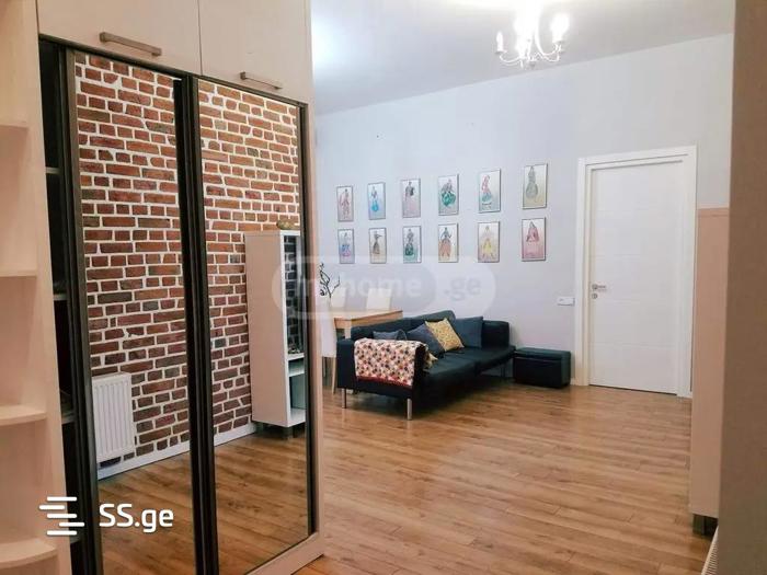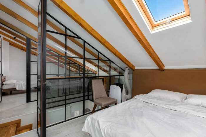 For rent: 3-room apartment on Mtatsminda The apartment is fully furnished and includes a modern kitchen equipped with new appliances, a sofa bed located in the living room, while the bedroom is situated on the mezzanine level, creating an elegant and functional layout. For more information or to see the apartment, call .