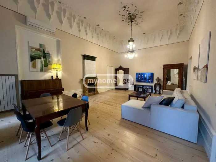 For rent, at 6 Mtkwris Street, opposite the Justice House, near Orbeliani. Two bedrooms, one studio, and one bathroom. The apartment is newly renovated, furnished, and equipped with all necessary inventory for living, with central heating and air conditioning, 2 months advance payment.