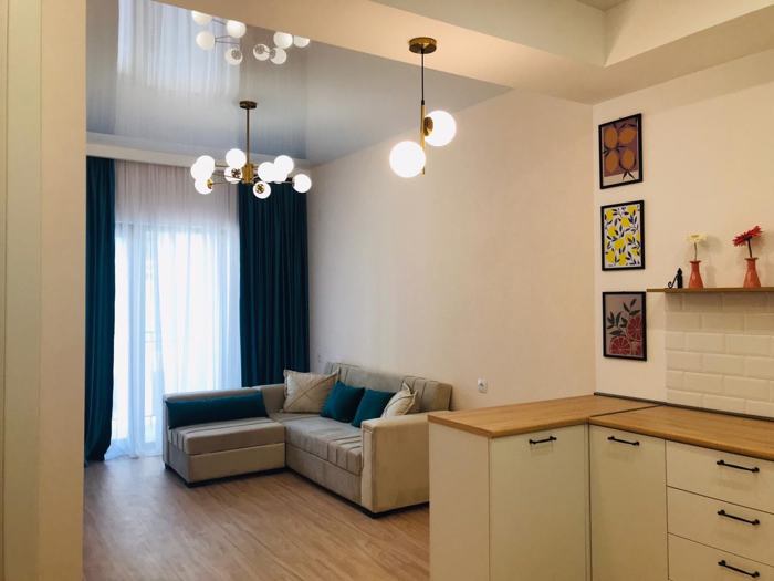 For rent 60 m² newly built apartment in Tbilisi, Nino Abashidze-Orbeliani St. #1 (Didgomi). It is one of the most prestigious and sought-after areas, characterized by developed infrastructure, green parks, and tranquility. This location provides comfortable living and easy access to any point in the city. This cozy and modern design apartment is ideal for those looking for comfortable accommodation. The apartment includes one bright bedroom, a studio-type living room with a kitchen, one full bathroom, and a balcony with city views. The new renovation is done with high quality materials, meeting all modern requirements. It is equipped with a central heating system and air conditioning. The building is newly constructed and stands out for its safety and cleanliness. Supermarkets, cafes, restaurants, schools, and kindergartens are nearby, making everyday life even easier. If you are interested, please contact me at the number indicated in the ad. Call or text me with 2 months advance payment.