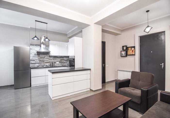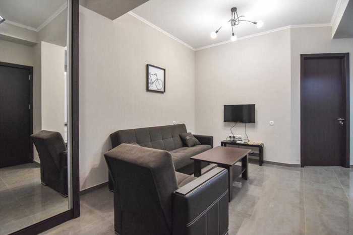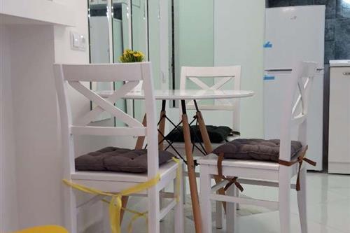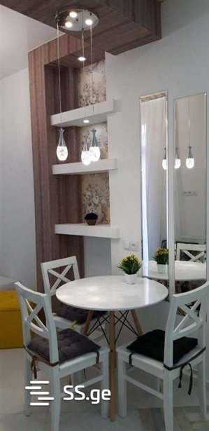 An apartment is for rent in Shanghai, at the intersection of Tamarashvili and Kazbegi, in a quiet area, 5 minutes' drive from Delisi metro station. The apartment is fully furnished and ready for living. Ideal for a couple or 1 person. The apartment is newly renovated, with a large built-in wardrobe in the bedroom, and is very sunny and bright.