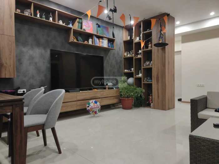 A well-furnished apartment is for rent, with furniture and appliances, with a prepayment of 2 months. The apartment is located in a newly built building, with a total area of 100 square meters, comprising 2 rooms and a large balcony. The apartment features a non-standard layout and has been newly renovated, ensuring a comfortable and cozy living environment. The apartment has a 37 square meter balcony.