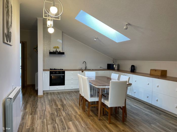 For rent: a cozy and bright 4-room apartment of 160 square meters in Vedzisi - 5 minutes on foot from the Gagarin Square in Saburtalo district. The apartment is furnished with full furniture and built-in appliances. It has 3 bedrooms, a large living room, a large kitchen, and 2 bathrooms. The apartment has central heating and air conditioning in every room. The apartment has a large balcony.
