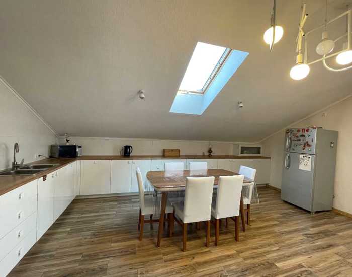 For rent: a cozy and bright 4-room apartment of 160 sq.m in Vedzisi - a 5-minute walk from Gagarin Square in the Saburtalo district. The apartment is fully furnished and equipped with built-in appliances. It consists of 3 bedrooms, a large living room, a spacious kitchen, and 2 bathrooms. The apartment has central heating and air conditioning in every room. It has a large balcony.