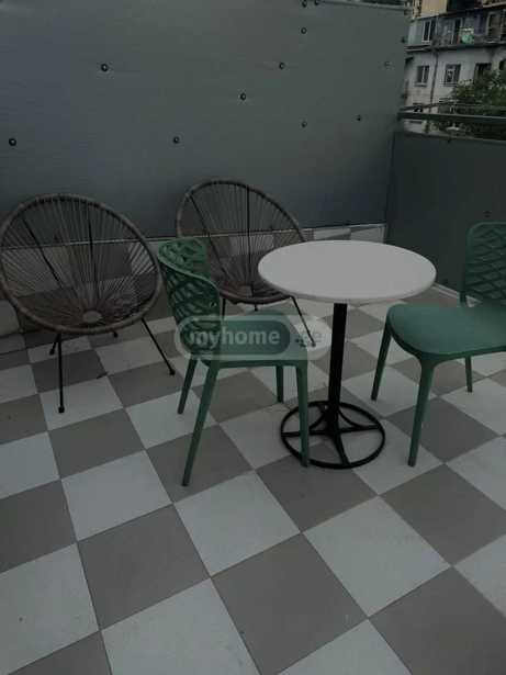 A non-standard 50 square meter studio-type apartment is available for rent on the high first floor (2-2.5 meters above ground), furnished with handmade furniture and accessories, equipped with all necessary appliances and household items for living. The apartment is located in a green, quiet neighborhood, 5 minutes away from two metro stops, 2-3 minutes away from bus stops, surrounded by various shops, cafes, and close to City Mall (10 min walk).